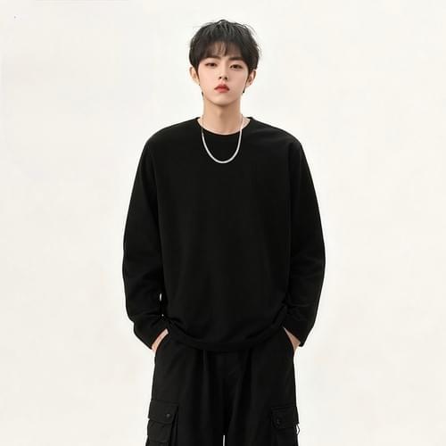 純棉圓領打底長袖T恤